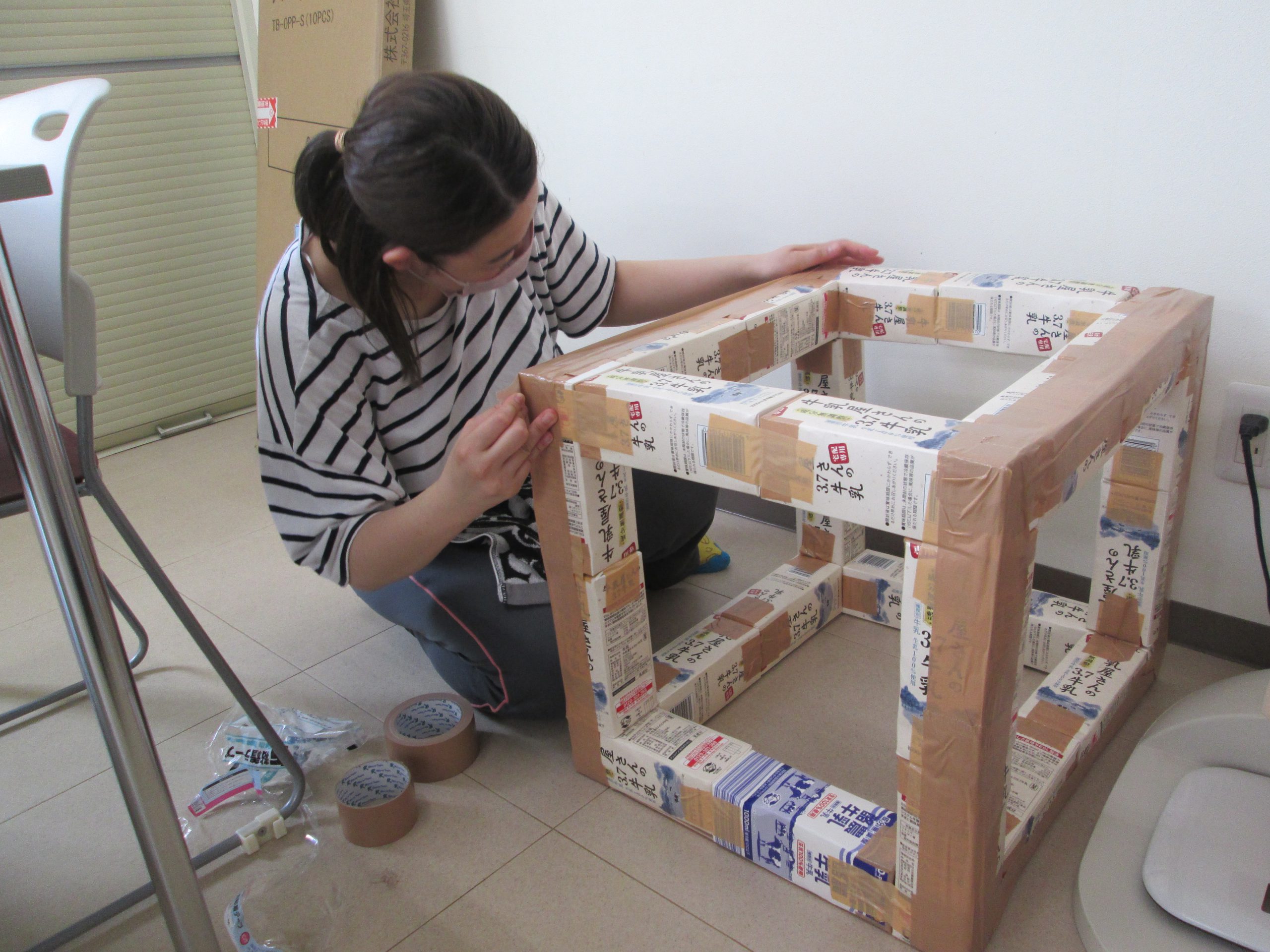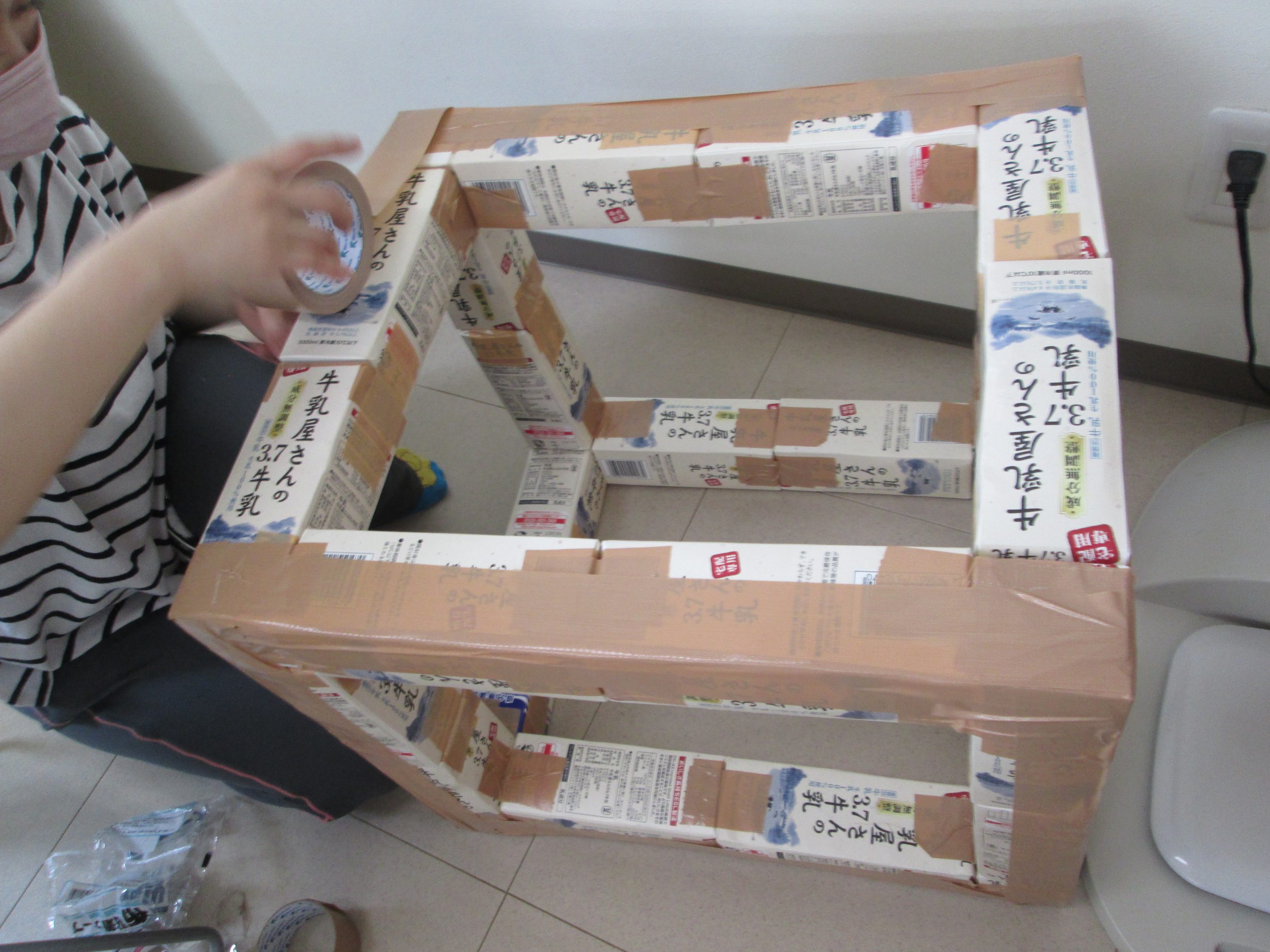 牛乳パック24本でこの形になります。