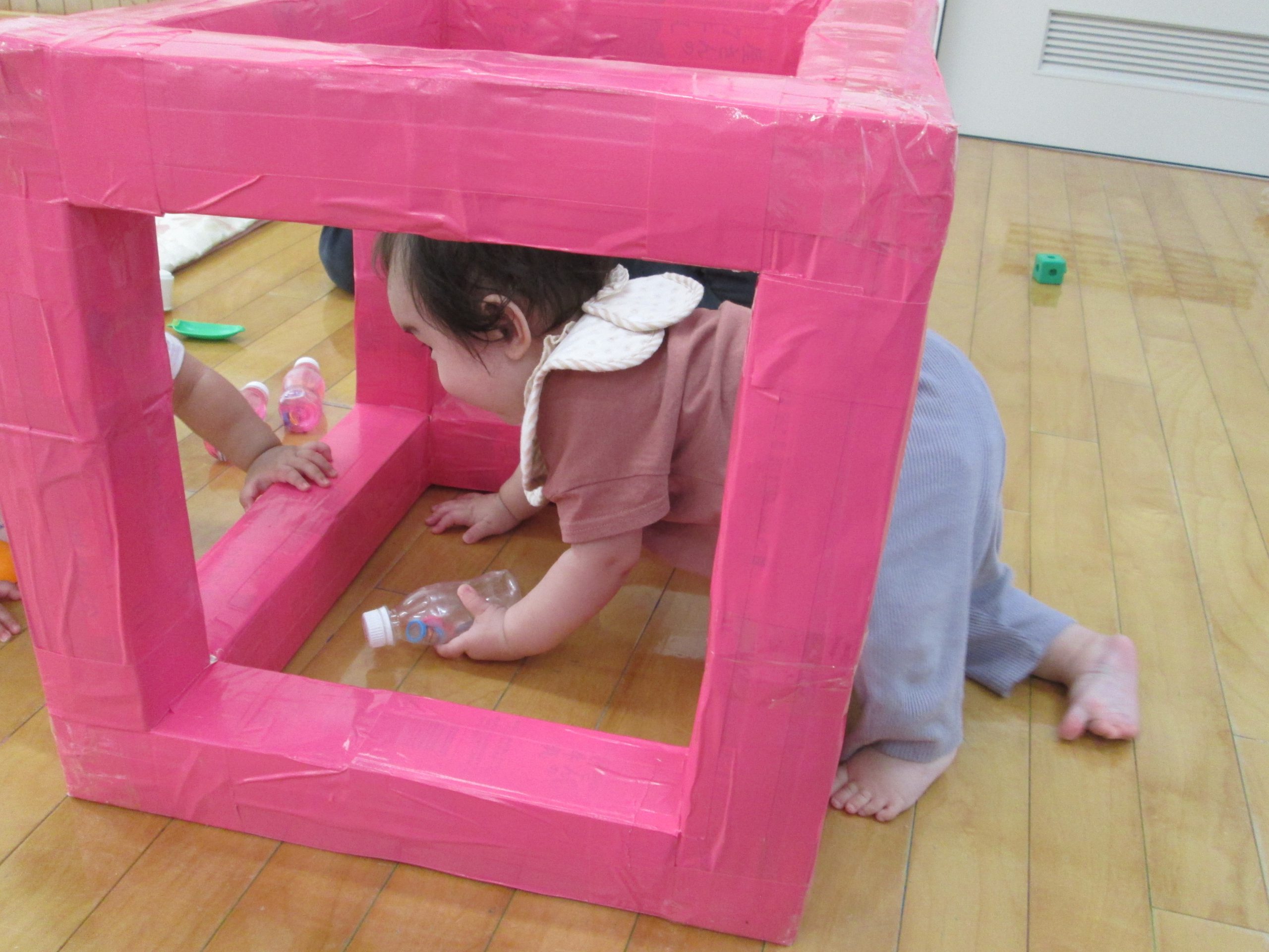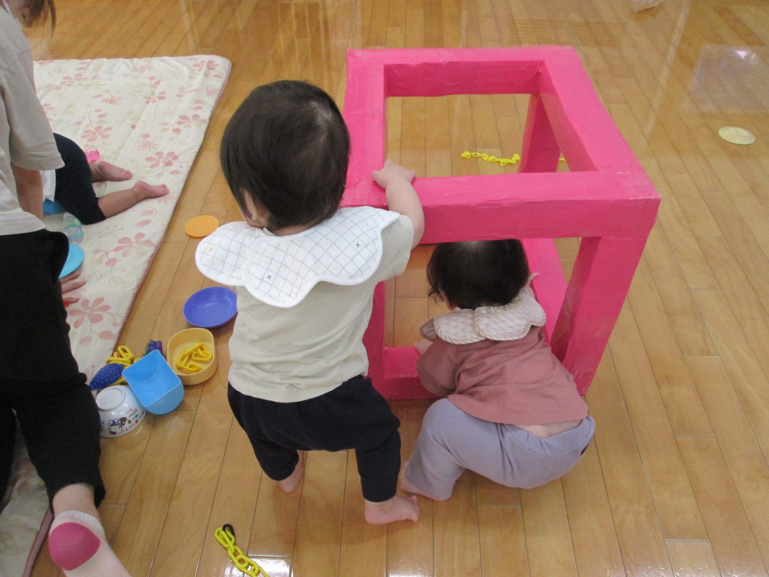 そのあとは、普段からいつも遊んでいる大好きなおもちゃやマットのお山、トンネルなどをだしてお家の人と一緒に遊びました♪