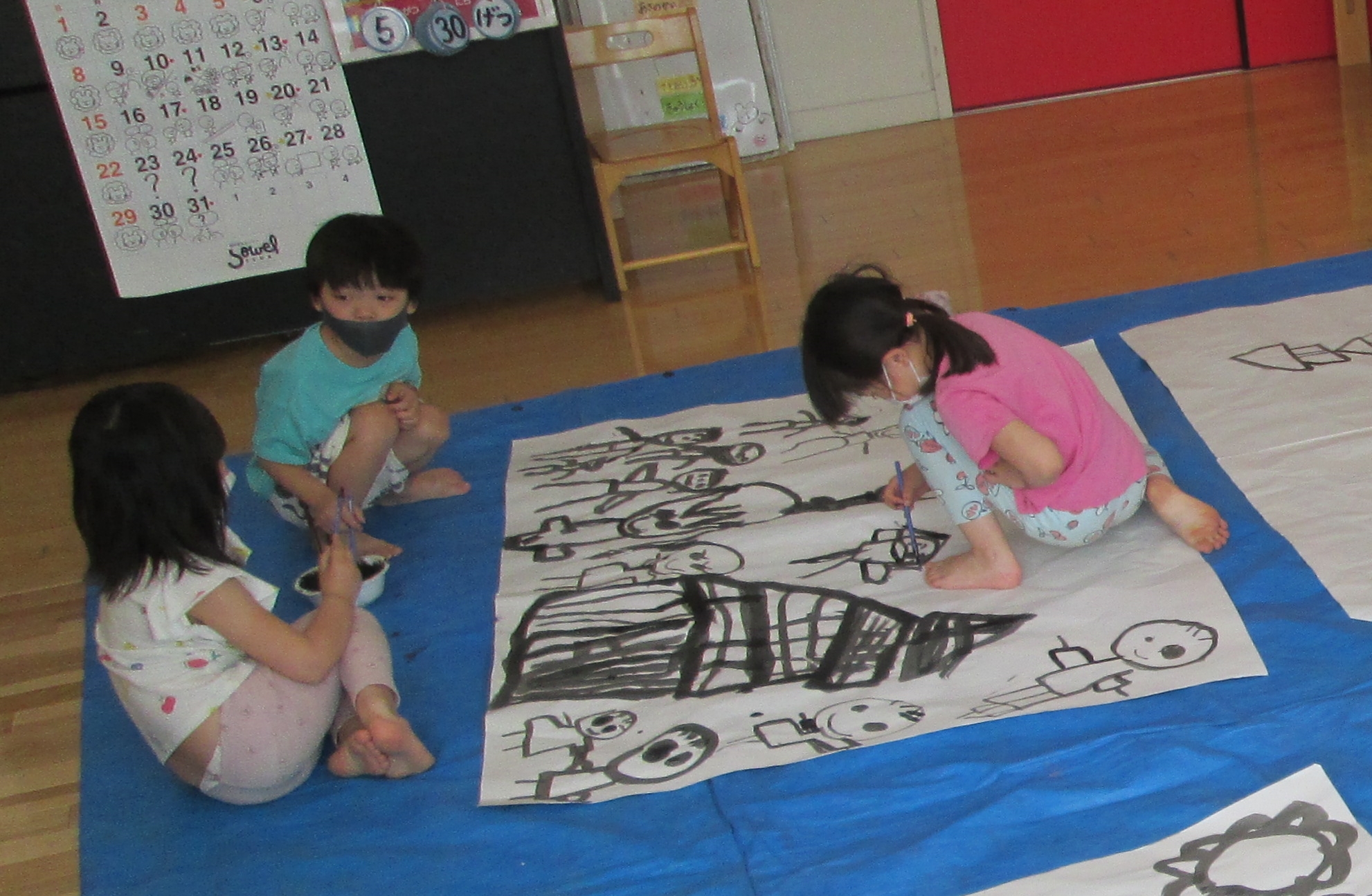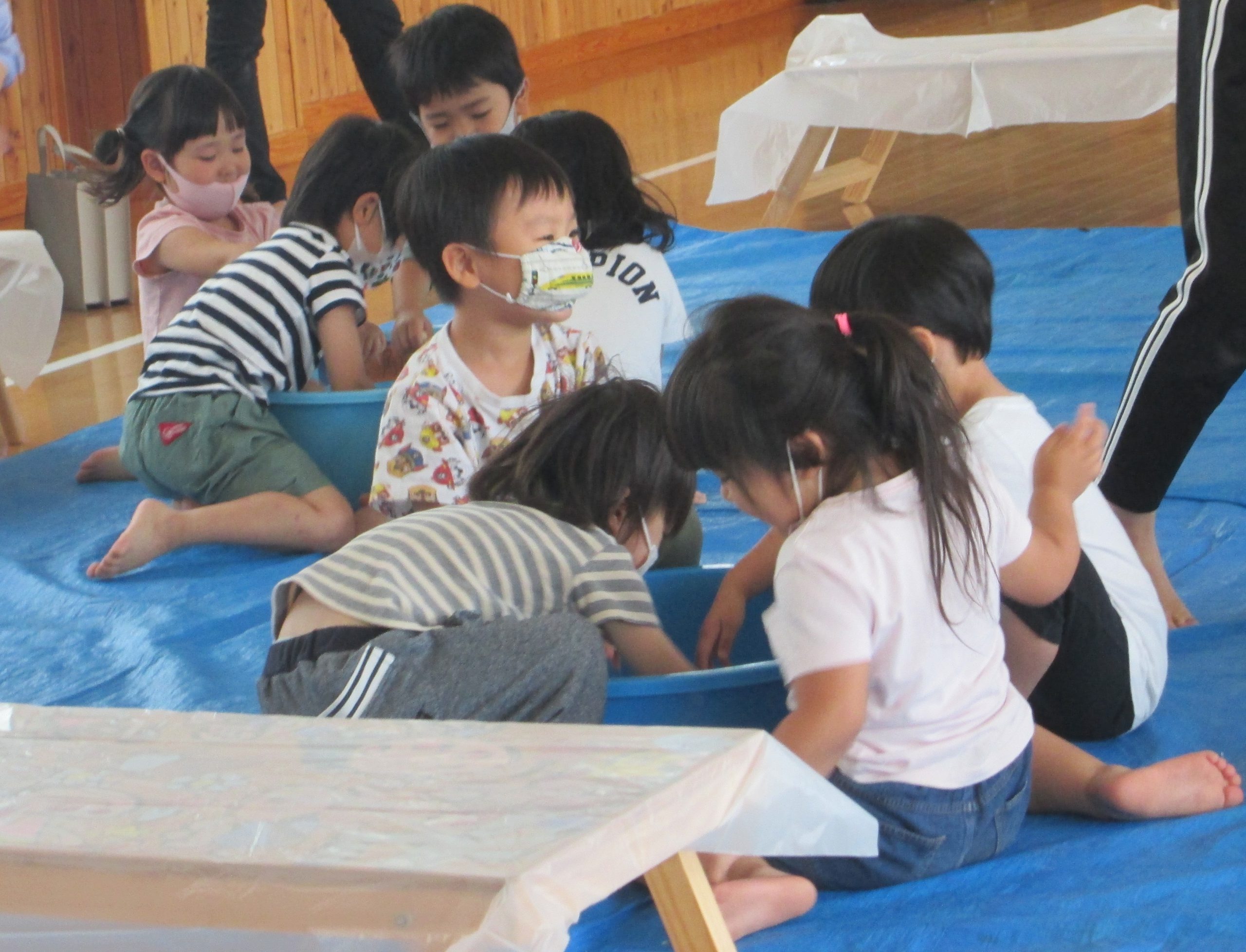 ひつじぐみは絵の具が好きな子が多く、自分たちの体にもどんどん塗っていまいた(笑)