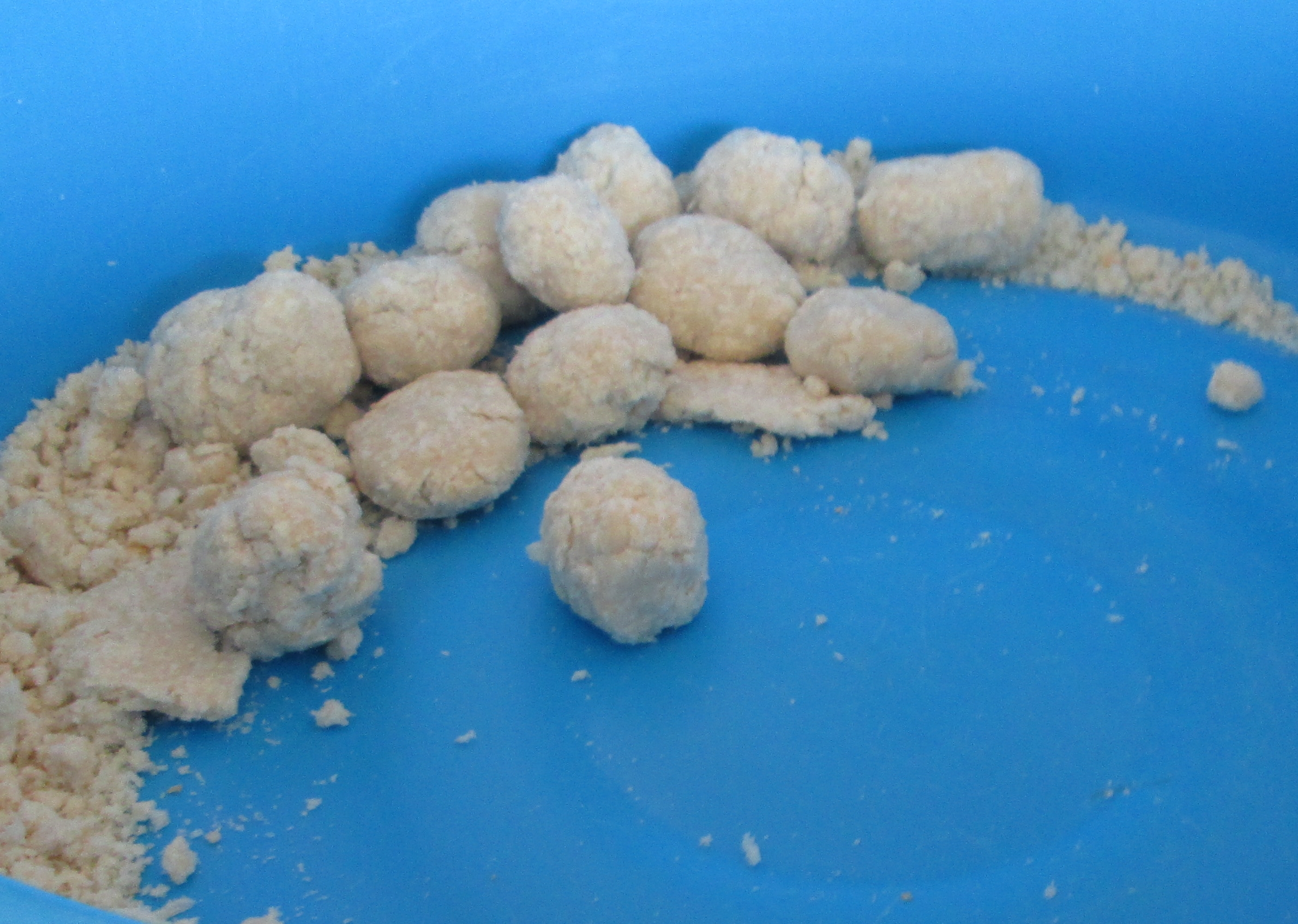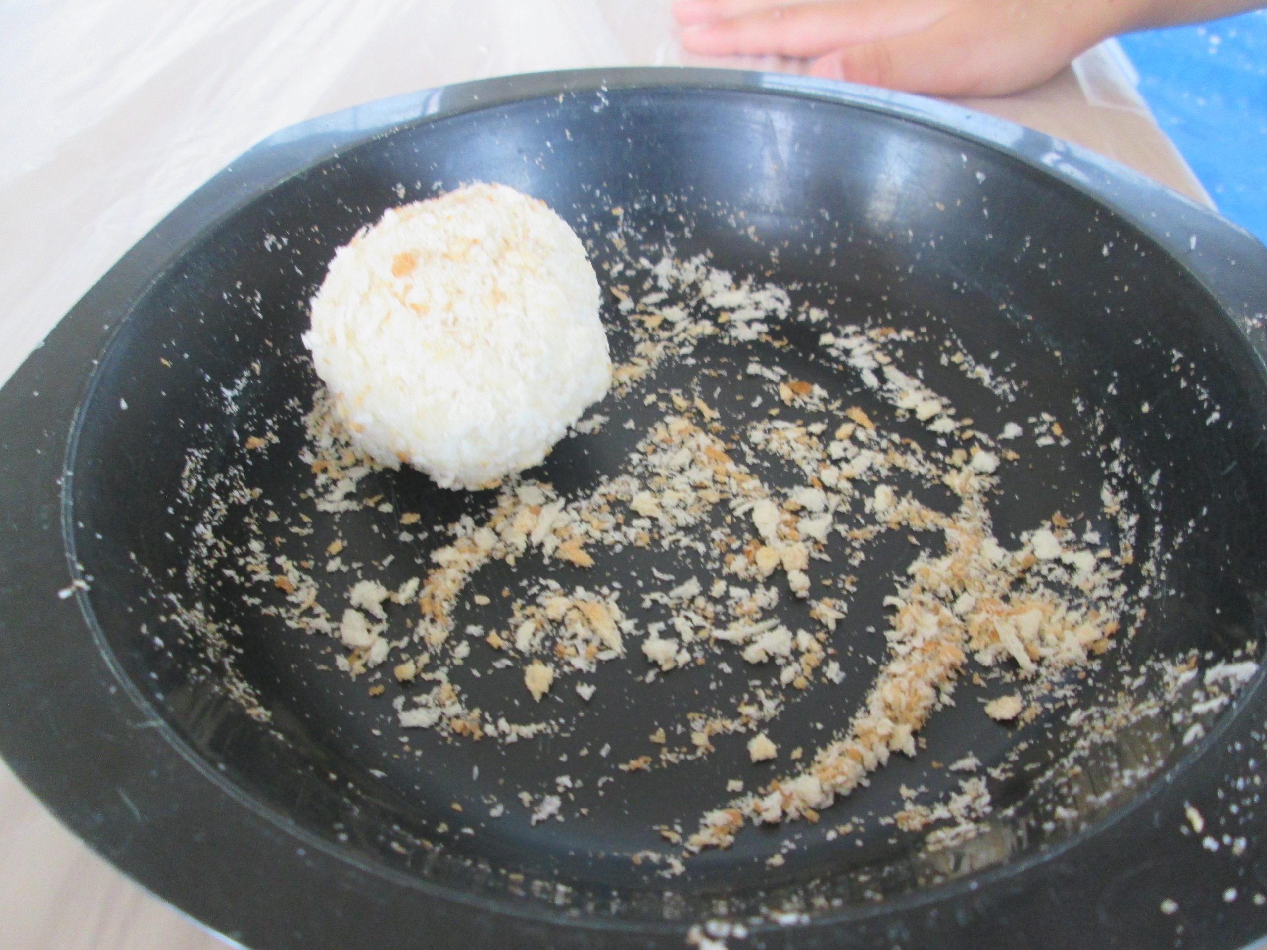 あほうどりにコロッケを作ってあげようとなり、参観日当日はパン粉の感触遊びをコロッケ作りに見立てて