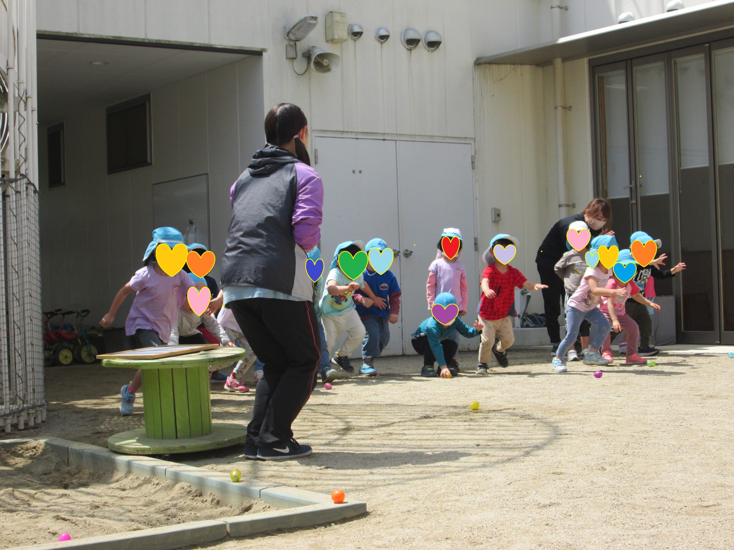 くまぐみ(4歳児)はよーいドンで始まり、卵をGetしている時に