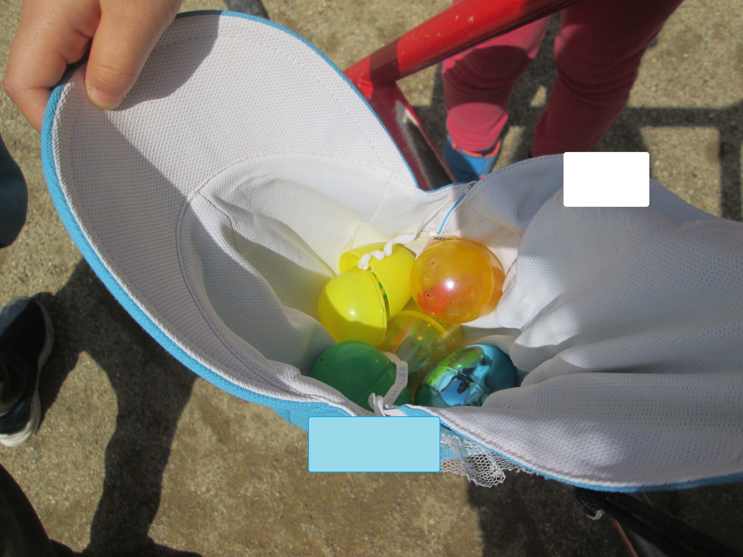 それをみて次々に帽子をお皿にして卵を入れていました♪