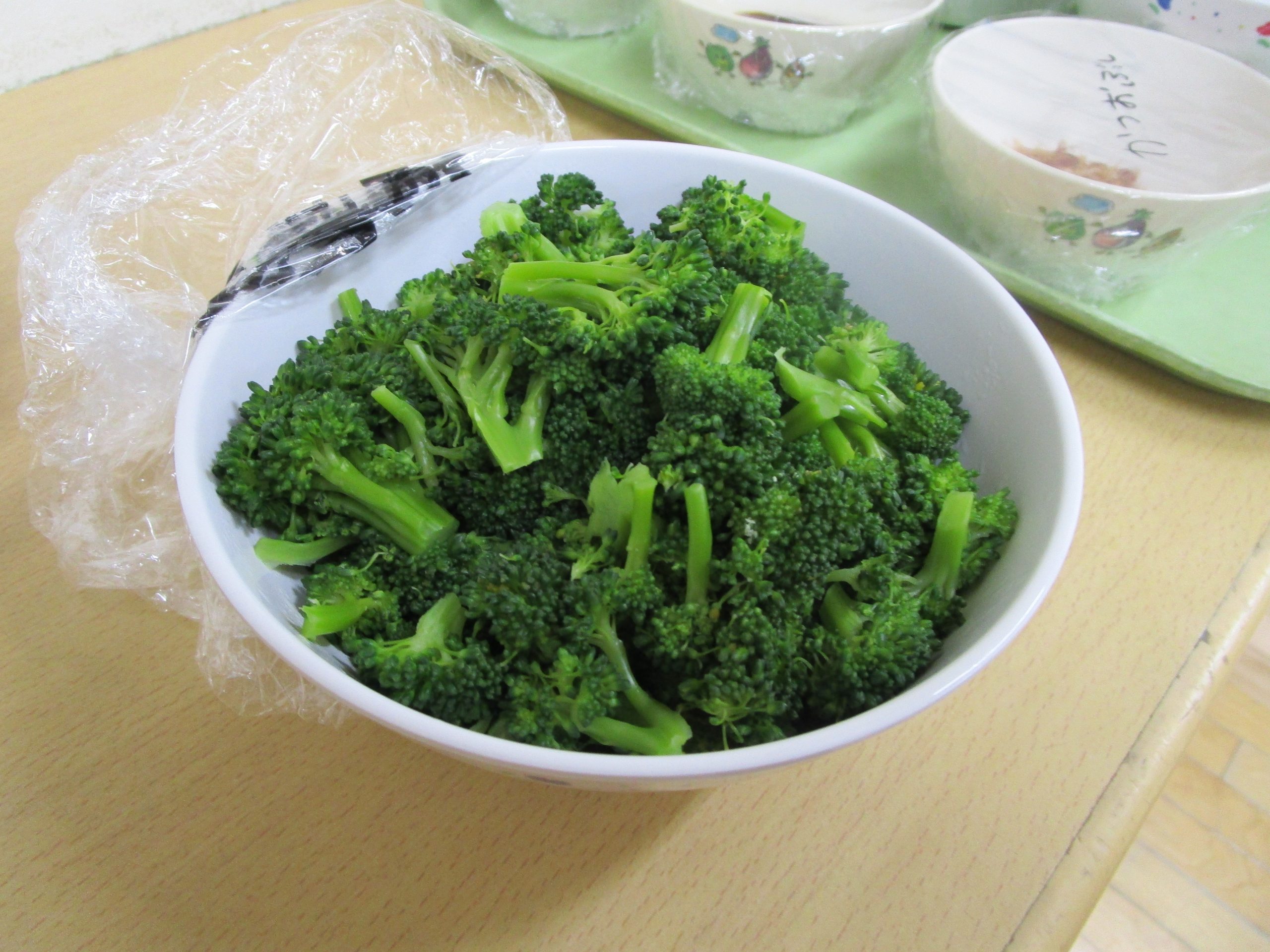 給食室へ持っていき、湯がいてもらいました(*´ω`)