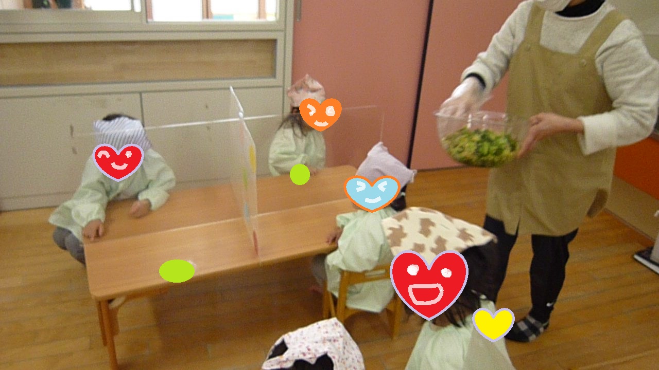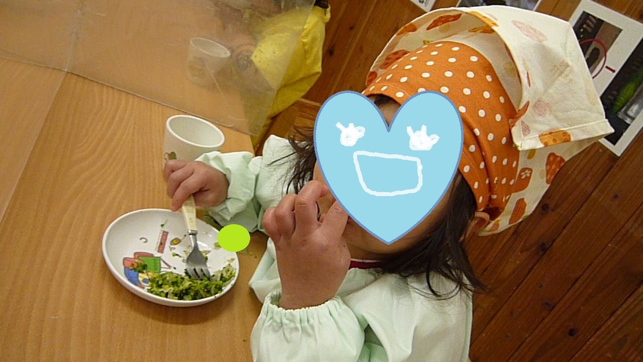 緑色の野菜が苦手なお友達も今日は、ぱくっ!と食べていました(≧▽≦)♪