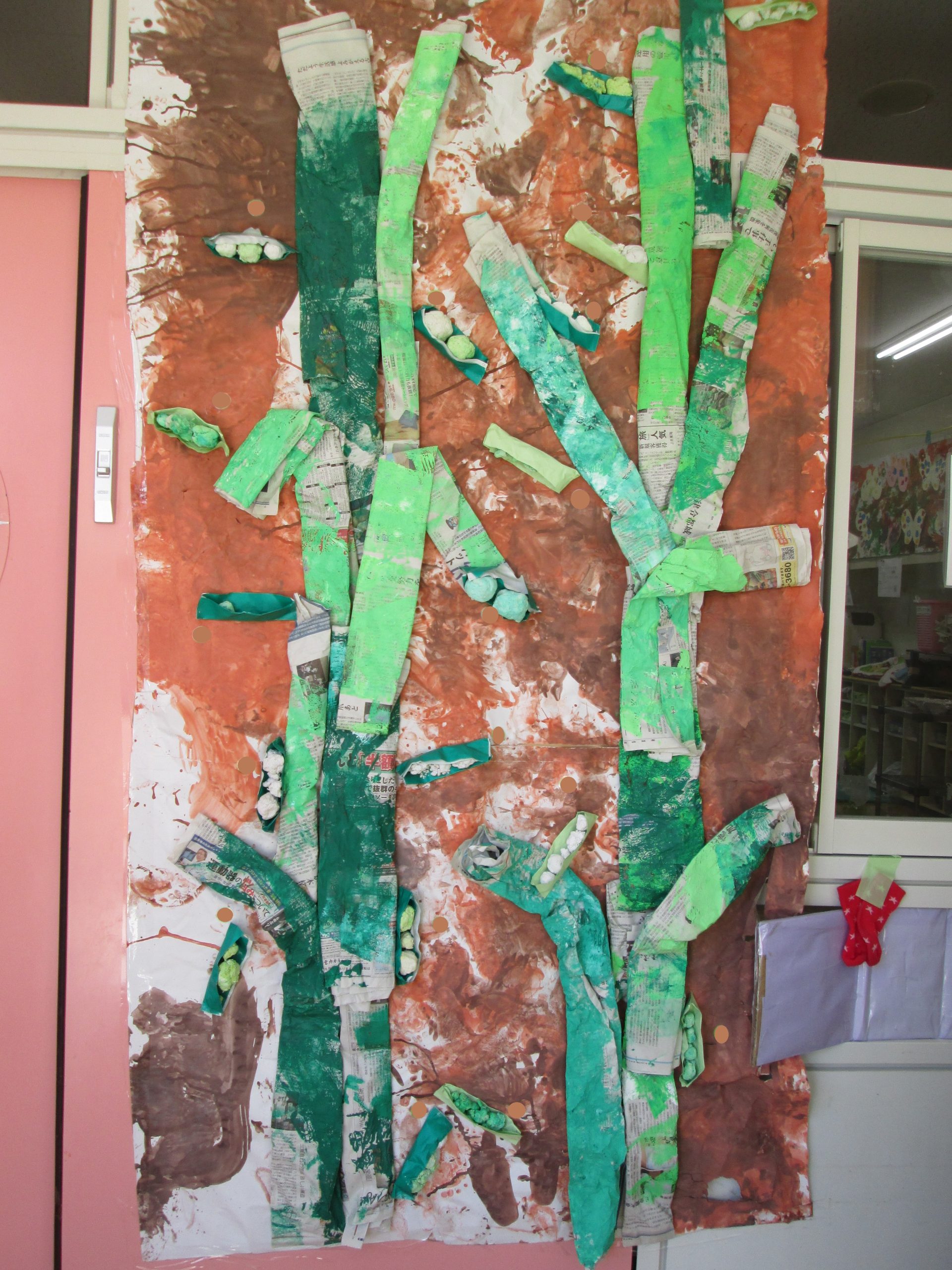 そしてこの楽しかったことを制作に繋げて、巨大な枝豆の壁面が完成しました~!!!