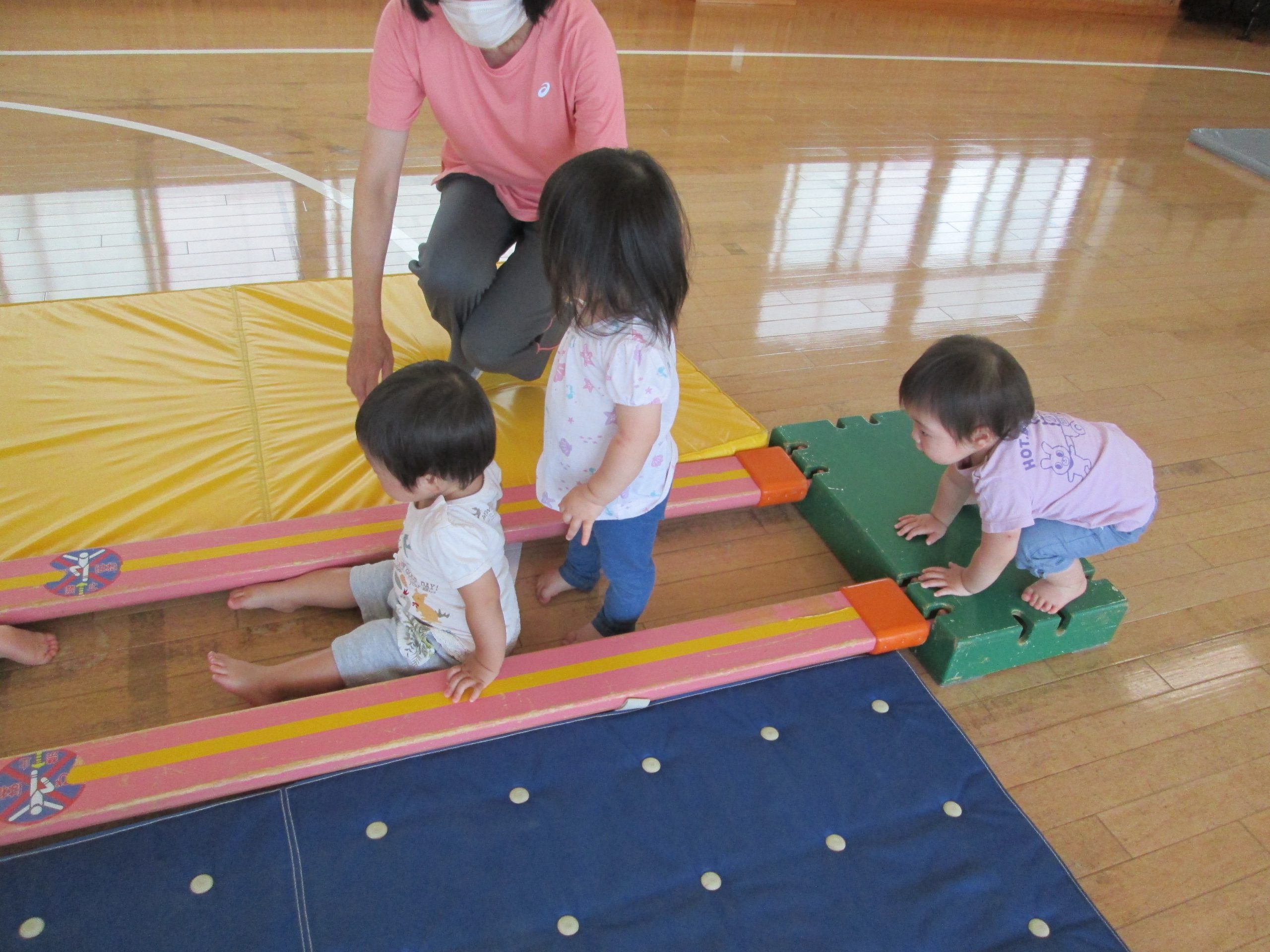 今日はりすぐみ(1歳児クラス)、うさぎぐみ(2歳児クラス)の室内での遊びの様子を