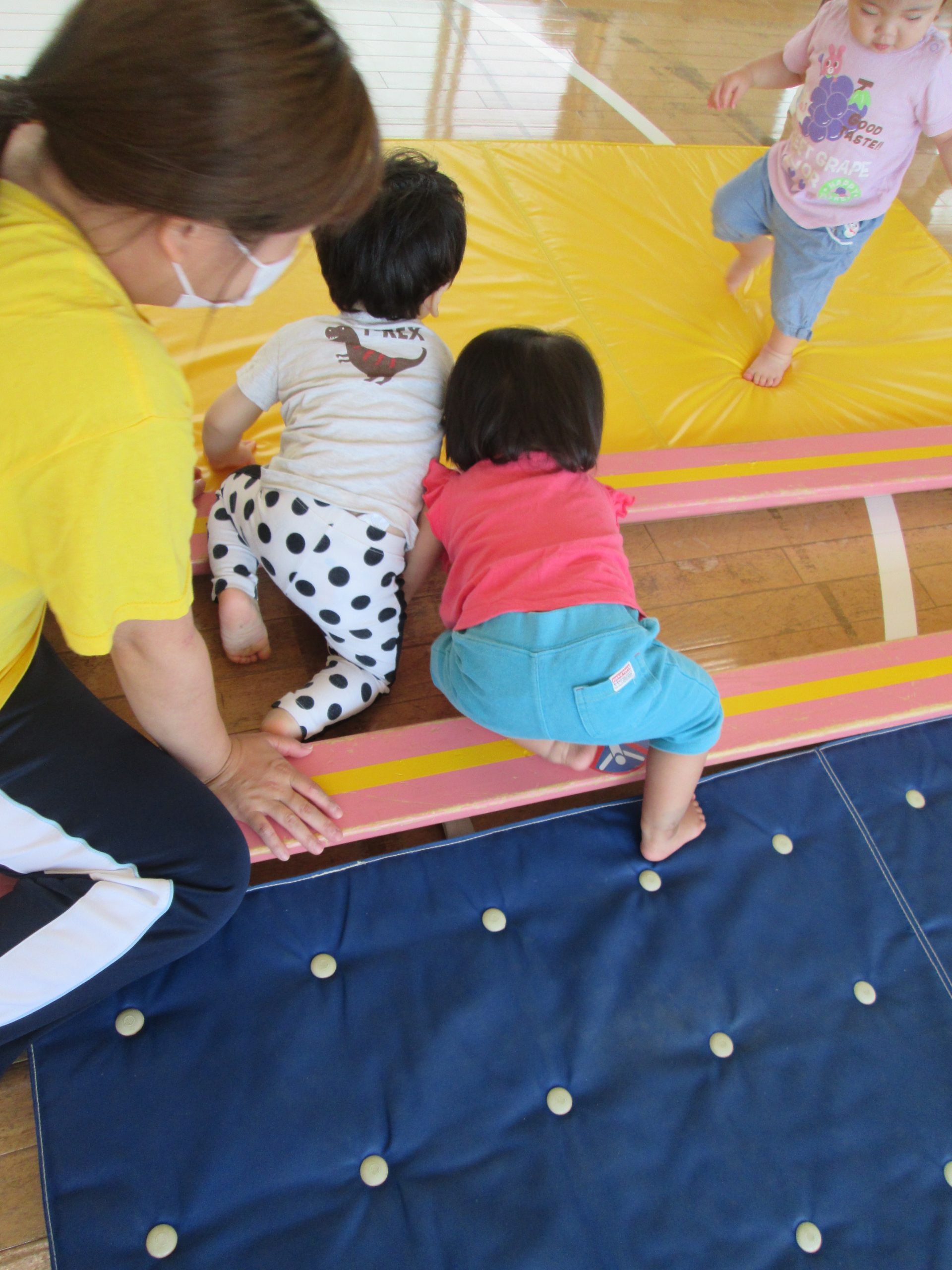 お部屋やリズム室など、室内でも思いっきり体を動かしたり楽しめるような遊び、保育を