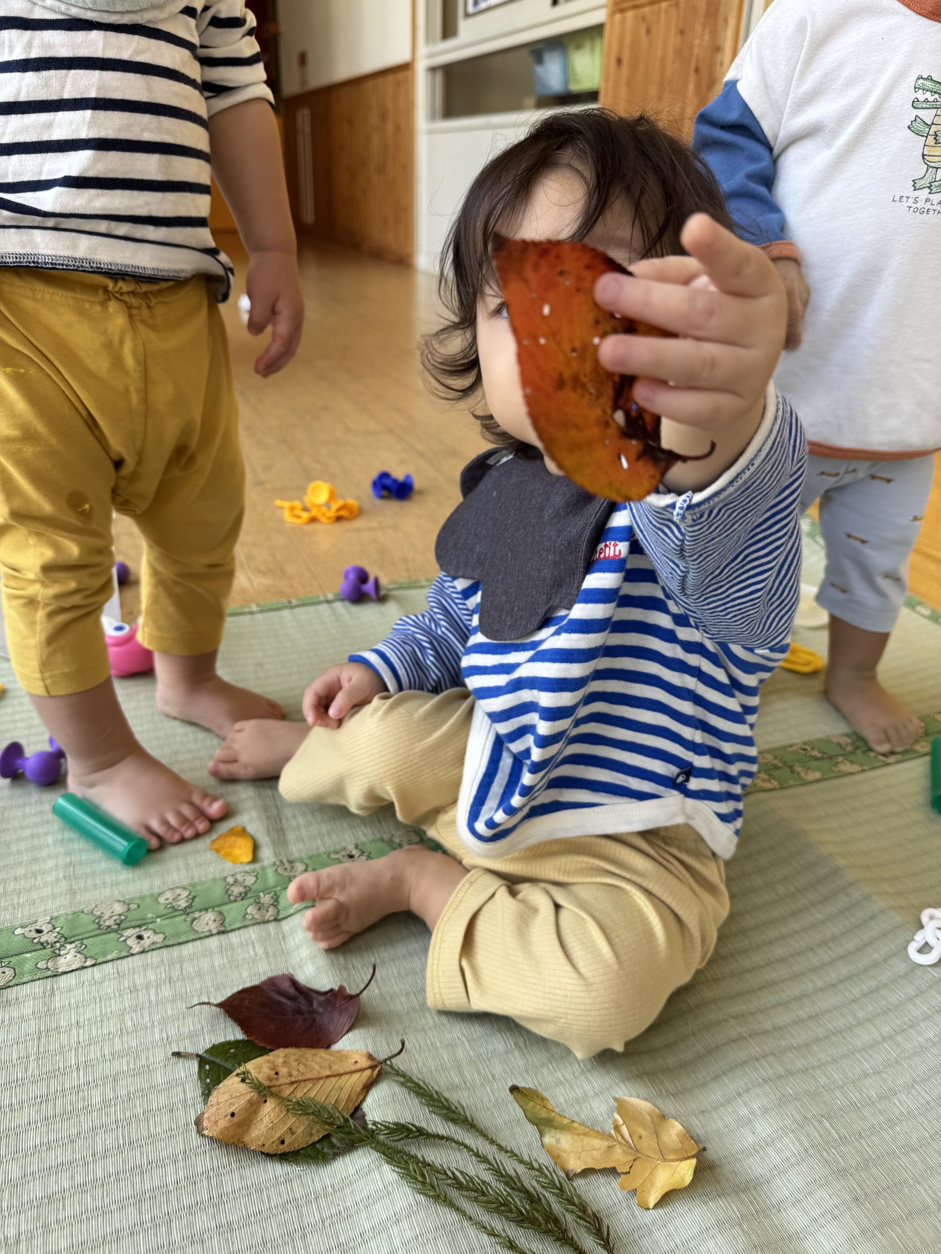 今回はsatosatoさんの力をお借りし、見たことがないような、自然を持ってきてくださり 子ども達は喜んで、触れて、遊んで、五感をたっぷり使っていました(*^-^*)