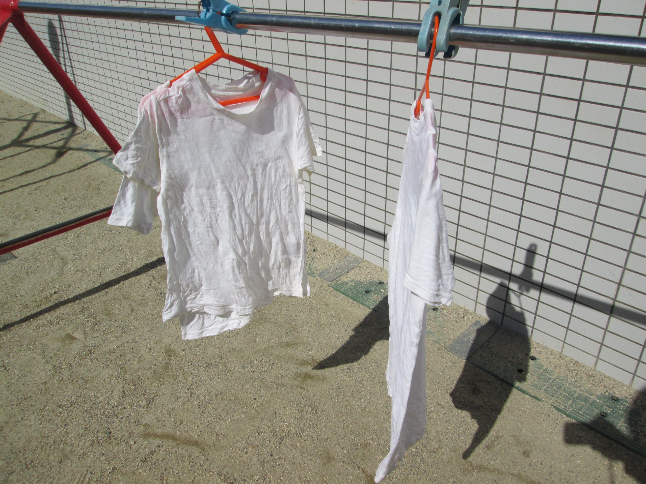 そして玉ねぎの皮のお汁の中にTシャツをつけて